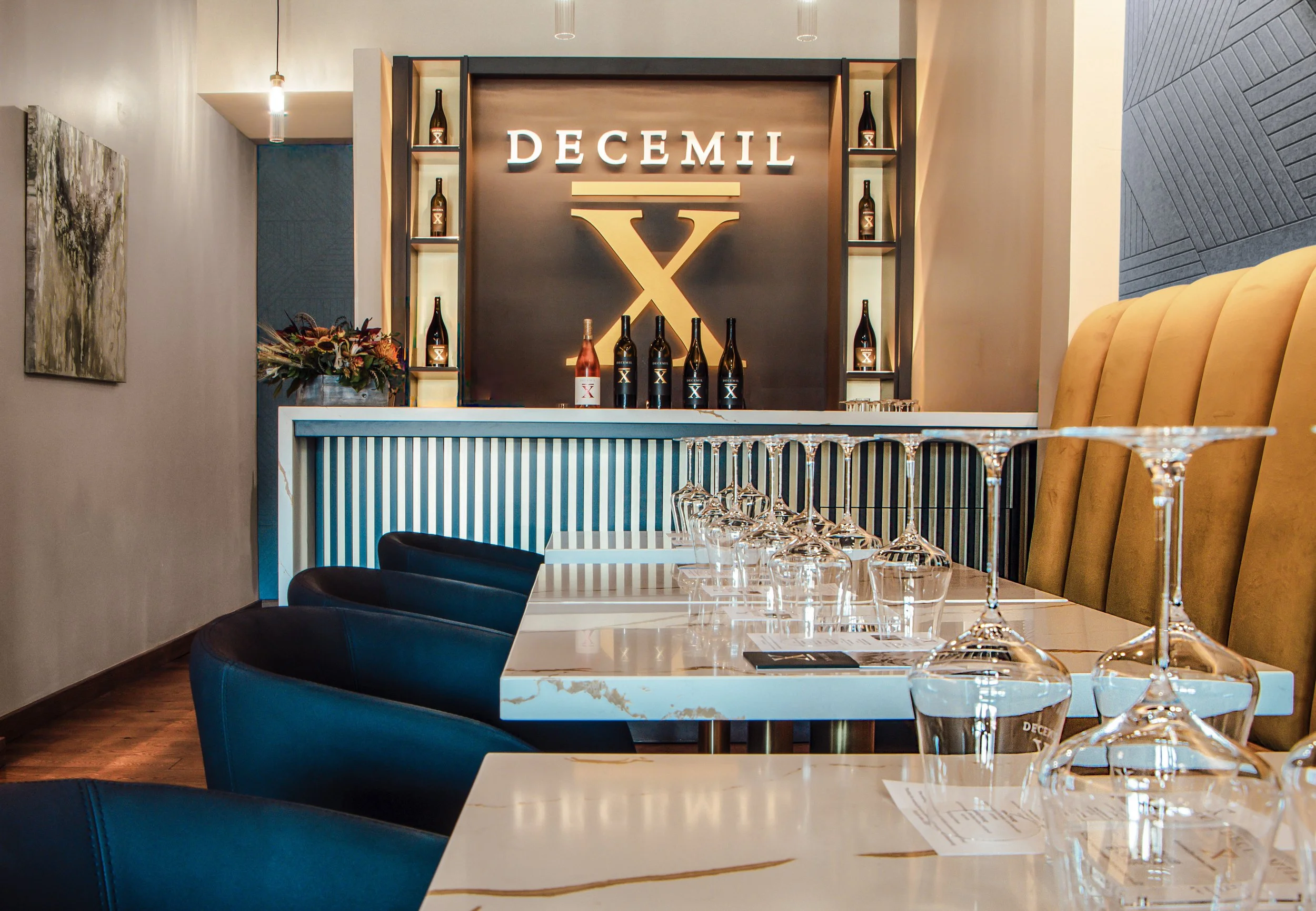 The tasting room itself was crafted with moody, speakeasy-inspired interiors that evoke a sense of discovery and exclusivity. Rich materials, dramatic lighting, and refined detailing sets the tone for a memorable guest experience. As we navigated the constraints of the existing shell, we simultaneously developed a permit-ready drawing set and a high-touch architectural interior package to ensure both code compliance and an elevated aesthetic.
